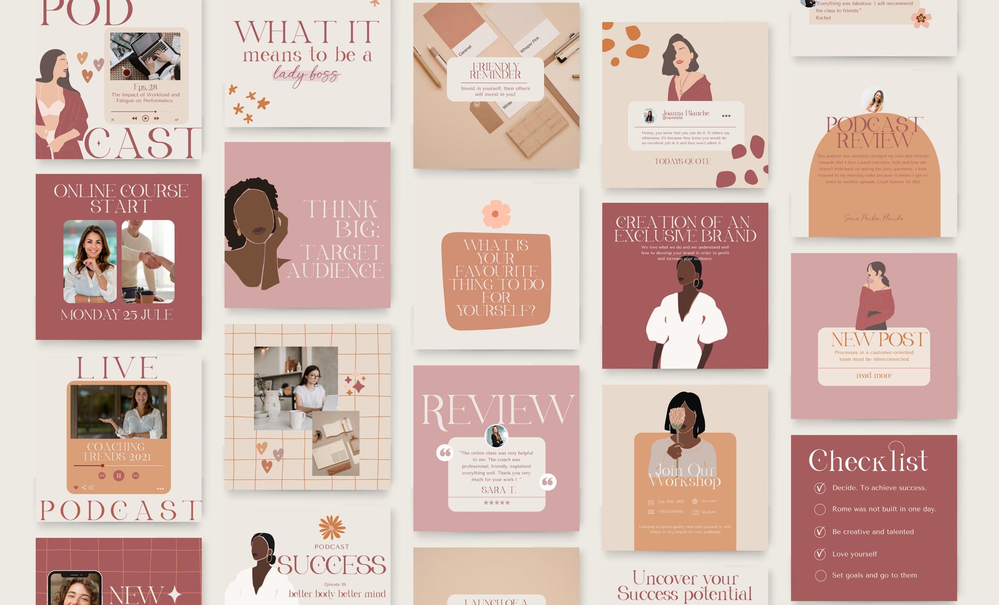 Feed de Instagram para jefas y pequeñas empresas: plantillas elegantes para el éxito - Plantilla Canva para interacción en redes sociales