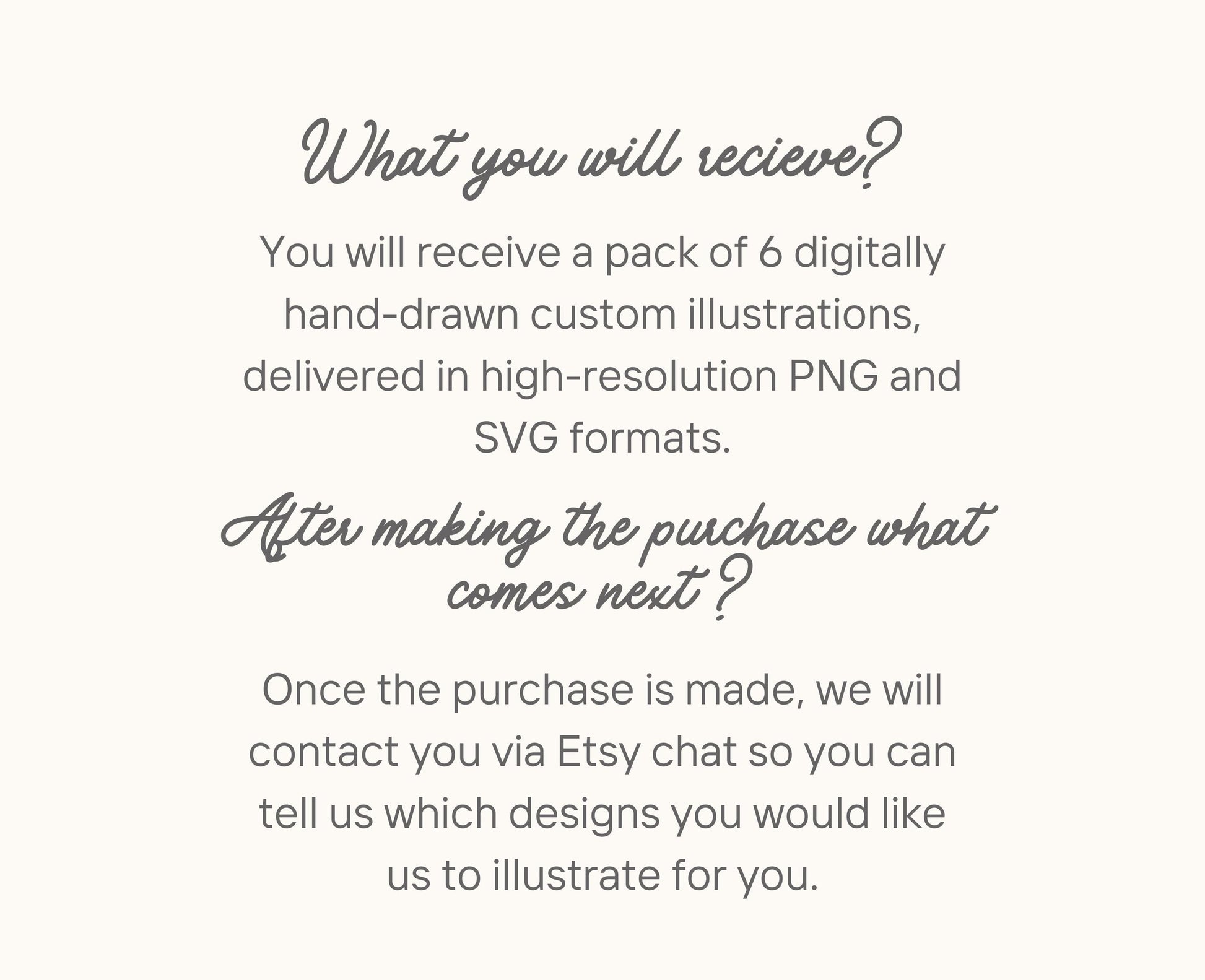 ✅ Una ilustración personalizada de alta resolución dibujada a mano, diseñada específicamente para su marca (6 íconos)