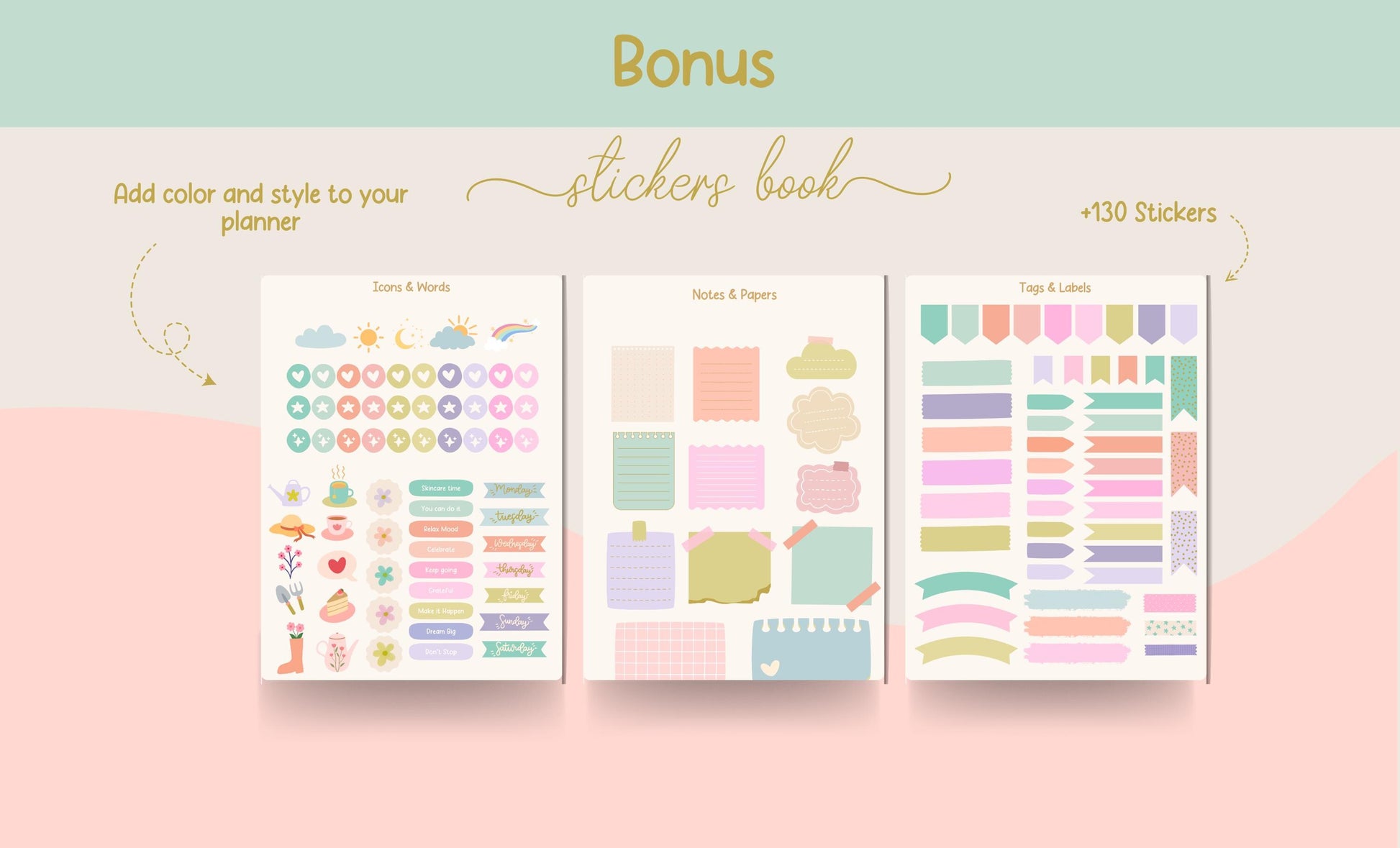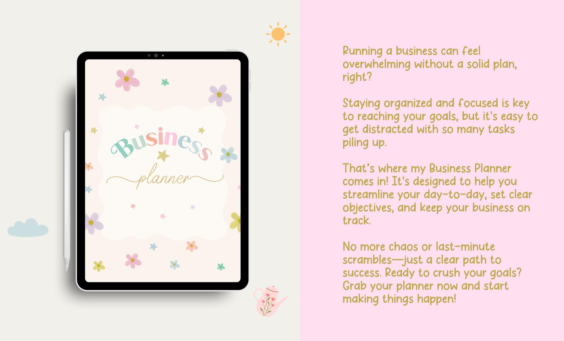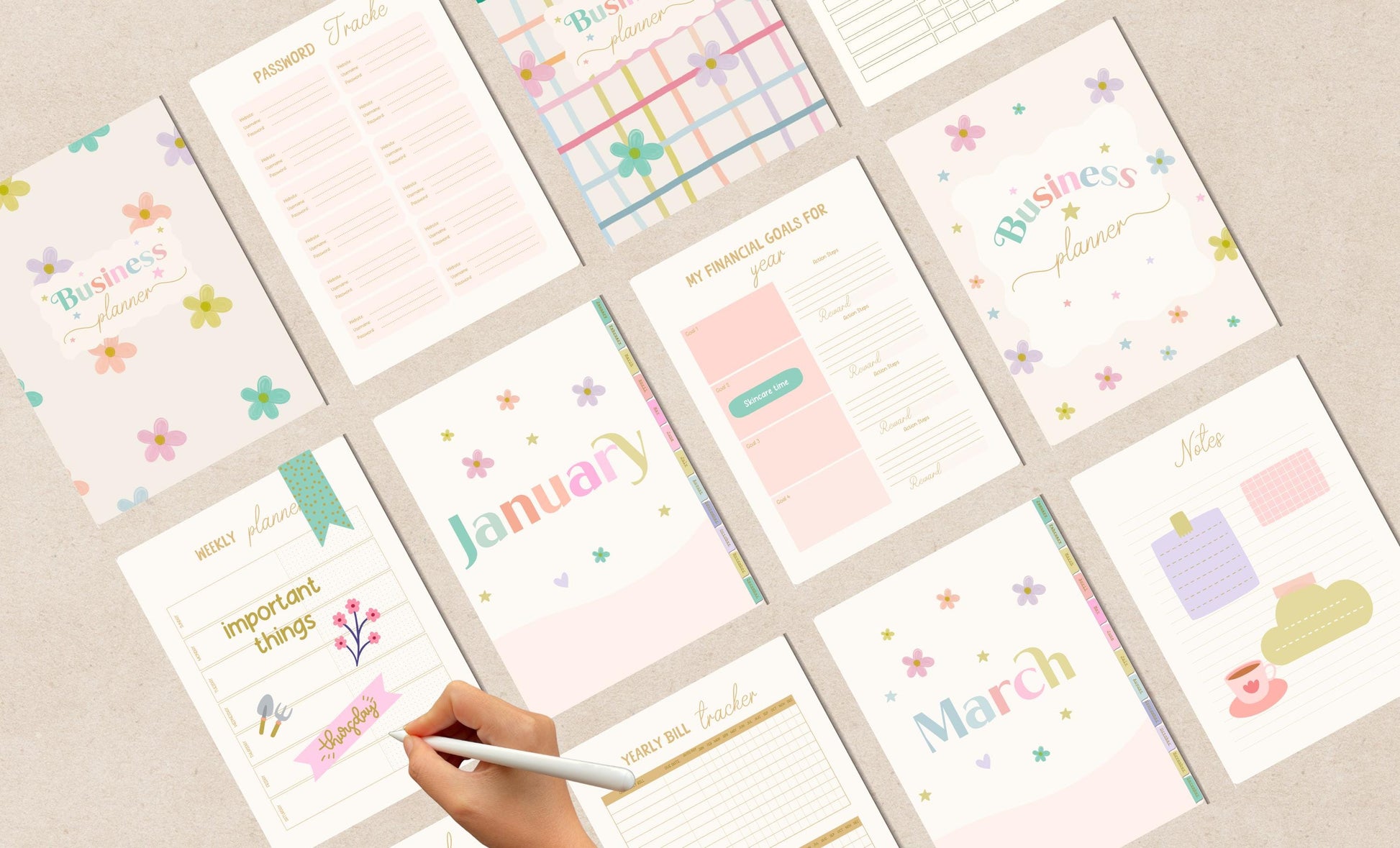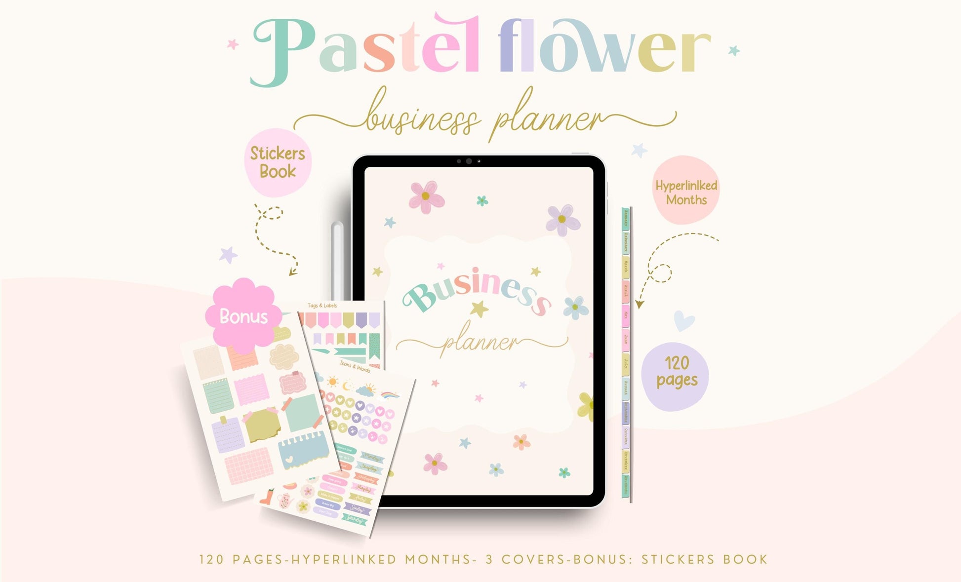 Planificador de negocios digital/planificador GoodNote/calcomanías para planificador/planificador con flores en tonos pastel/planificador para pequeñas empresas