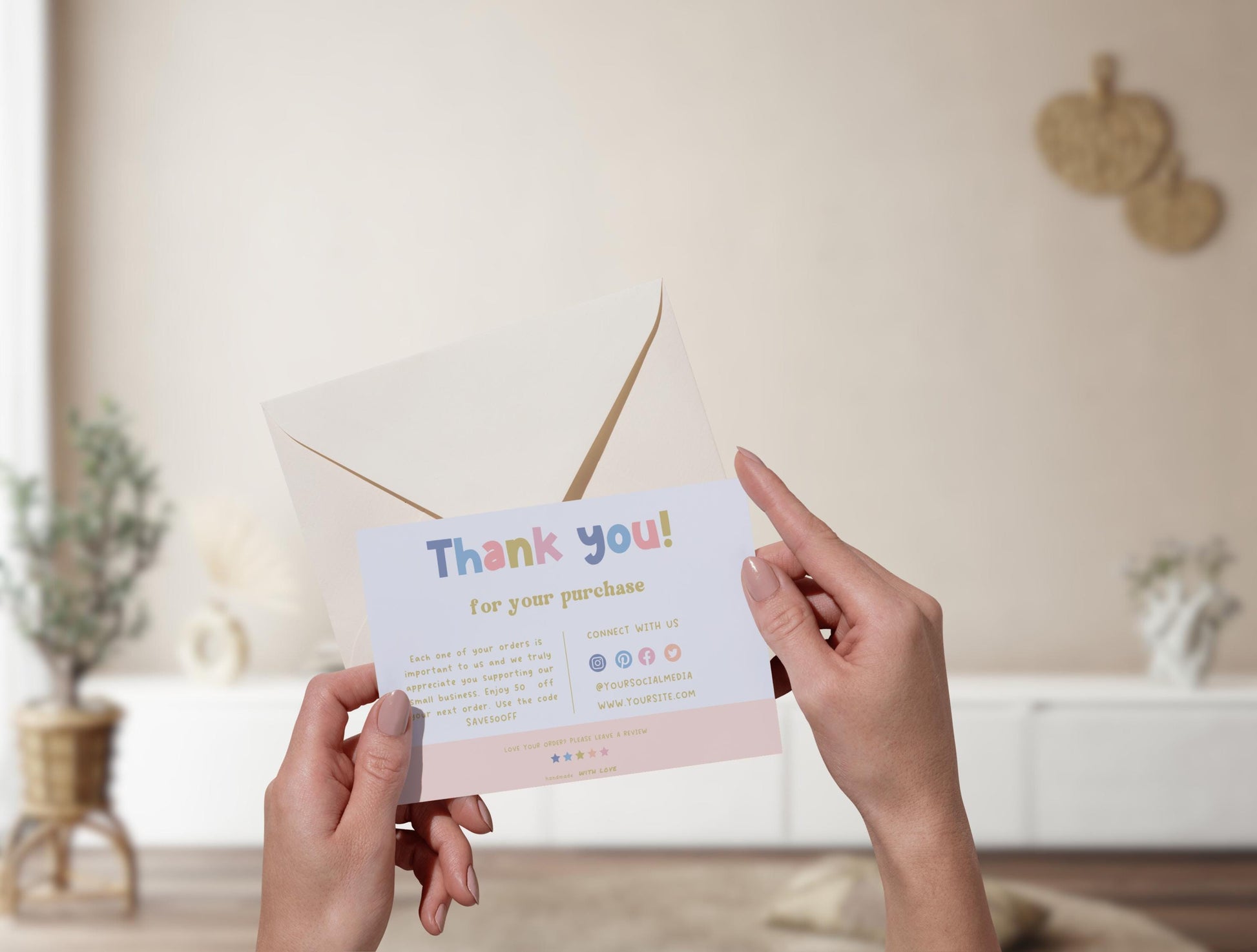 Plantilla de Canva de tarjeta de agradecimiento colorida editable/tarjeta de agradecimiento al cliente/inserto de empaque para pequeñas empresas