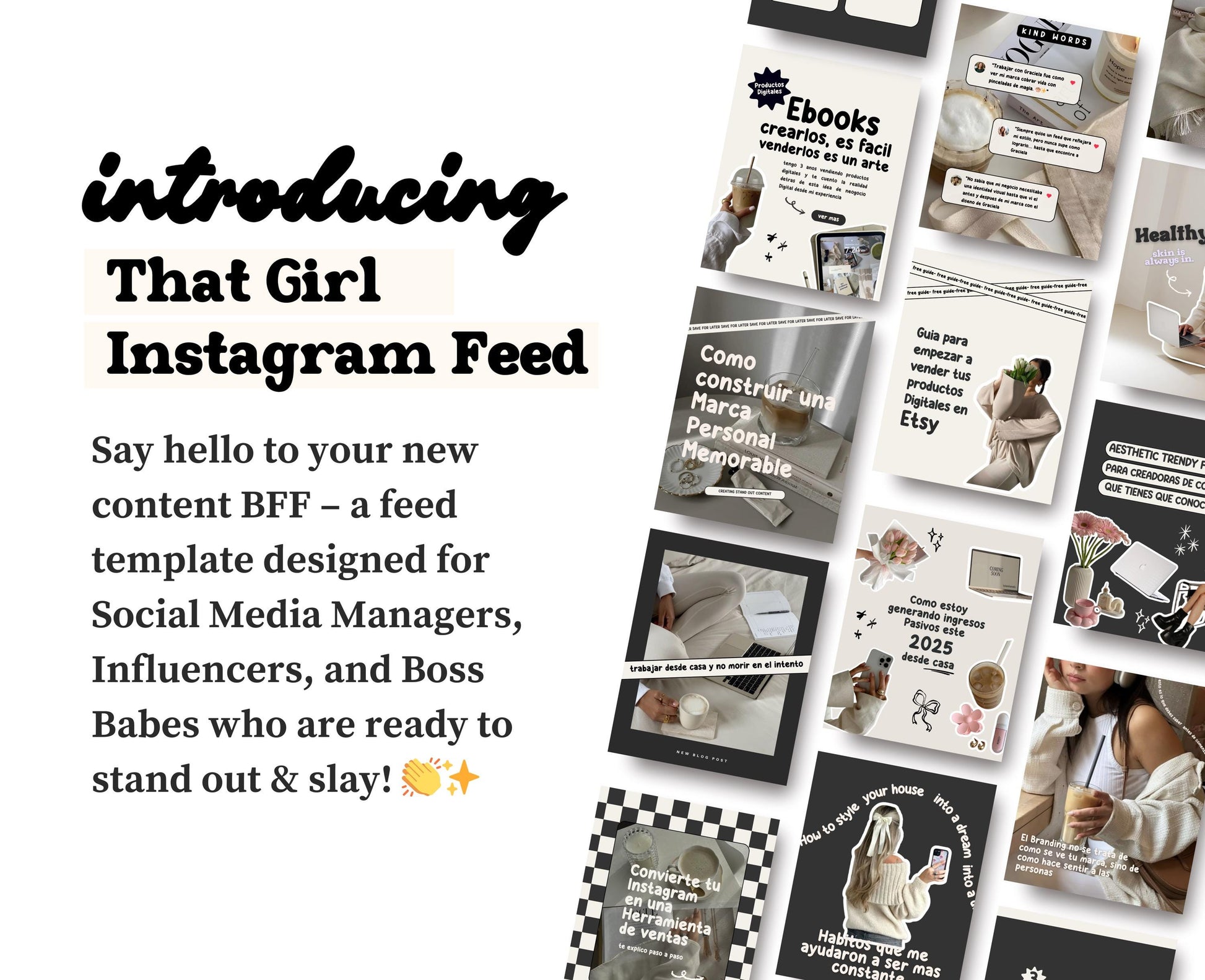 ¡Chica, te tengo! 💕 Esta plantilla de Instagram de That Girl es tu nueva arma secreta para crear publicaciones virales que llamen la atención sin estrés. Ya seas influencer, coach de redes sociales o experta en marketing, este paquete de plantillas te ayuda a: