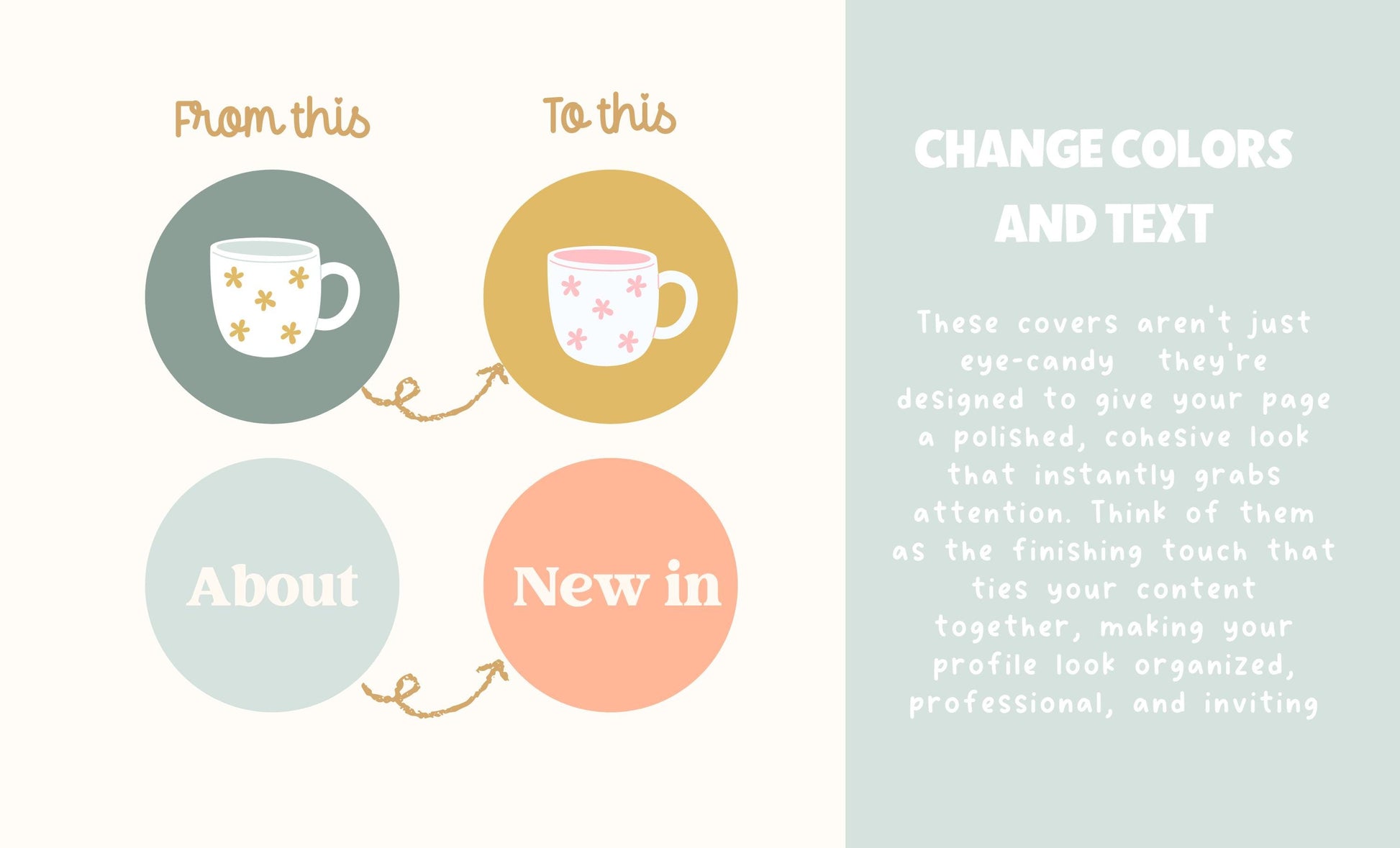 Puedes editar estos Destacados, cambiarles el color y el texto. Puedes descargarlos y usarlos al instante.